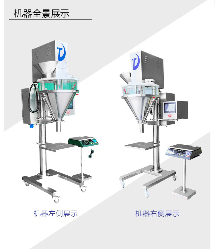 該半自動粉劑包裝機也可稱為粉劑定量包裝機是按照國家GMP標準而設計,集機、電、光、儀于一體,單片機控制, 具有自動定量、自動充填、重量超差報警、自動調整計量誤差等功能,精度高、速度快、扭距大、壽命長。電子傳感控制稱重反饋,對包裝容器不限制,適合物料品種和包裝重量規格經常變化的場合使用;數碼管顯示,操作簡單方便;各種產品調整參數、配方可儲存,最多可儲存10個配方;不銹鋼和有機玻璃組合式料箱,無需工具即可方便拆洗。